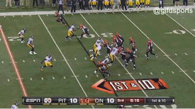 Cutting through a stout Pittsburgh defense is no easy feat. Bernard’s other-wordily speed let him do it without being touched by a defender. It was a simple dump-off that he took to the house. But Bernard made it look too easy, and running a 4.5 in the 40-yard dash will help with that. We should have seen the rest coming.