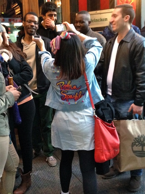 That is a picture of a line of people waiting to get into McGee’s pub in Manhattan last night. McGee’s was made famous in the HIMYM community when it was revealed to be the inspiration for the show’s central watering hole MacLaren’s. It seemed only fitting, for a show that did everything it could to convince its viewers they were peeking into the lives of five real New Yorkers, to try and live in the world of HIMYM one last night. You can visit “fictional” websites like TedMosbyIsAJer.com or read Barney’s blog. You can purchase copies of the Bro Code or the Playbook and even sport your own yellow umbrella. So why not watch the final episode from the gang’s favorite bar? For all I know, Barney Stinson was lurking around the corner trying to seduce inebriated women. I know for a fact that Robin Sparkles was there.