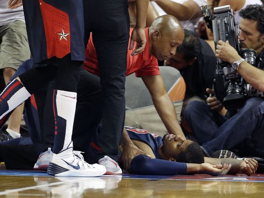 It has now been almost two weeks since Paul George fell awkwardly on a (non-regulation, apparently) basket stanchion after fouling James Harden during a Team USA scrimmage, breaking his leg in spectacularly horrific fashion. Forget the Indiana Pacers’ championship hopes; they will be lucky to make the playoffs fielding a starting five which will probably consist of George Hill, Rodney Stuckey (!), C.J. Miles, a soon-to-be 34-years-old David West and Roy Hibbert, who at times seems as close to being out of the league as he is to being Defensive Player of the Year.